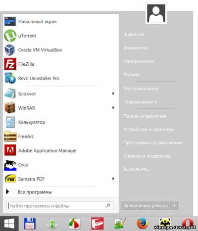 Восстанавливает главное меню из Windows 7 со всеми привычными функциями: поиск,
