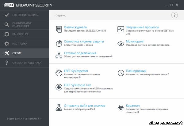 Графический интерфейс пользователя ESET Endpoint Security полностью изменен: внешний вид стал лучше, а работа с приложением — более интуитивно понятной. Ниже приведены некоторые улучшения в ESET Endpoint Security 6.